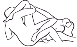 うつ伏せになってる女の足を男が引き上げ、残った片足をまたいで横から挿入する。