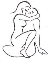 あぐらをかいた男の上に女がまたがる。